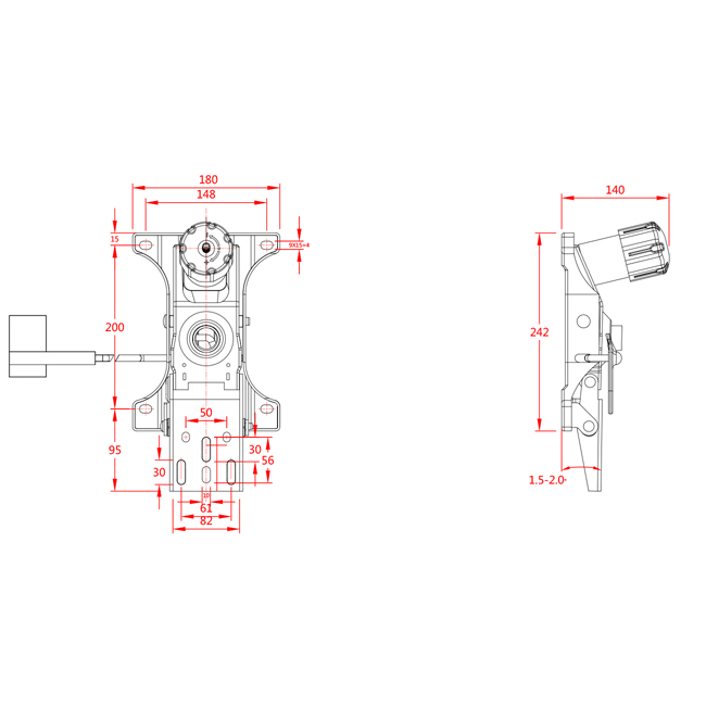 • 倾仰角度1级锁定,倾仰角度0 ~ 17°。